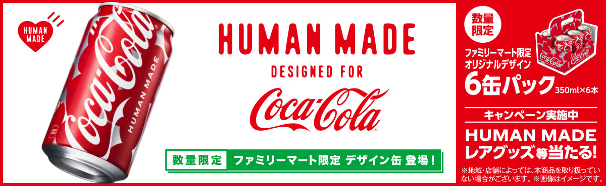 世界中から注目されるライフスタイルブランド HUMAN MADEデザインの「コカ・コーラ」が4月7日(火)ファミマ限定発売 渋谷にラッピング店舗登場やレアグッズが当たるキャンペーンも!