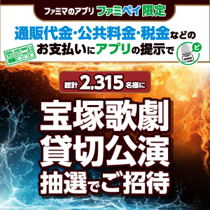 「宝塚歌劇 星組 貸切公演」に抽選で2,315名さまをご招待! 演目は「興行収入20億円超えのインド映画『RRR』を舞台化」した話題作! 通販代金・公共料金・税金などのお支払いに「ファミペイ」の提示で応募可能に