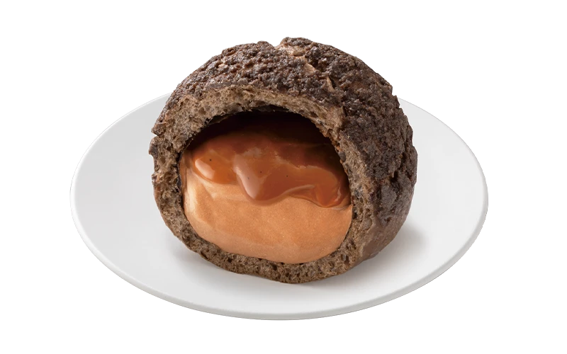 ほろ苦キャラメルソースと濃厚ショコラクリームを、クッキー生地のシューで包みました。重厚な余韻が楽しめるシュークリームです。数量限定
