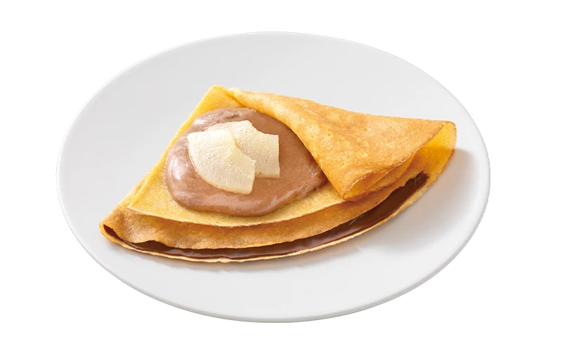 焦がしバター香るクレープ生地で、濃厚なショコラクリームと、ショコラを引き立てるバニラで香り付けした洋梨を包み込みました。数量限定