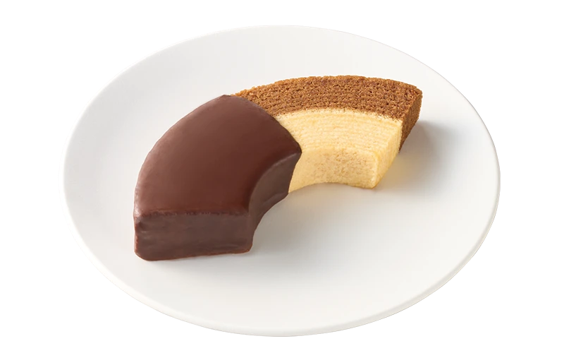 ショコラと発酵バター香るプレーン、2層のしっとり食感のバウムクーヘンに、チョコをかけました。数量限定