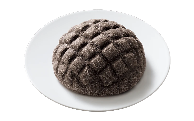 ココア入りヘーゼルナッツ風味ビスケット生地のメロンパンに、ヘーゼルナッツホイップとヘーゼルナッツチョコクリームをサンドしました。